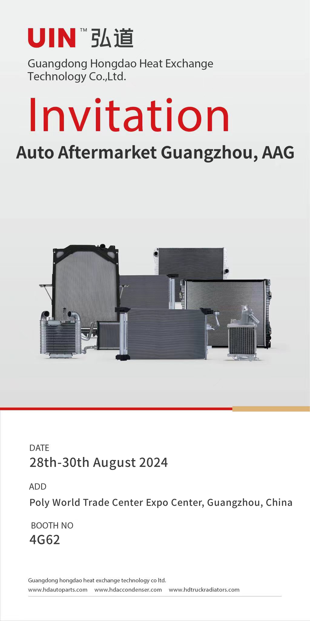 Guangdong Hongdao Heat Exchange Technology CO.,LTD will attend the Auto Aftermarket Guangzhou, AAG